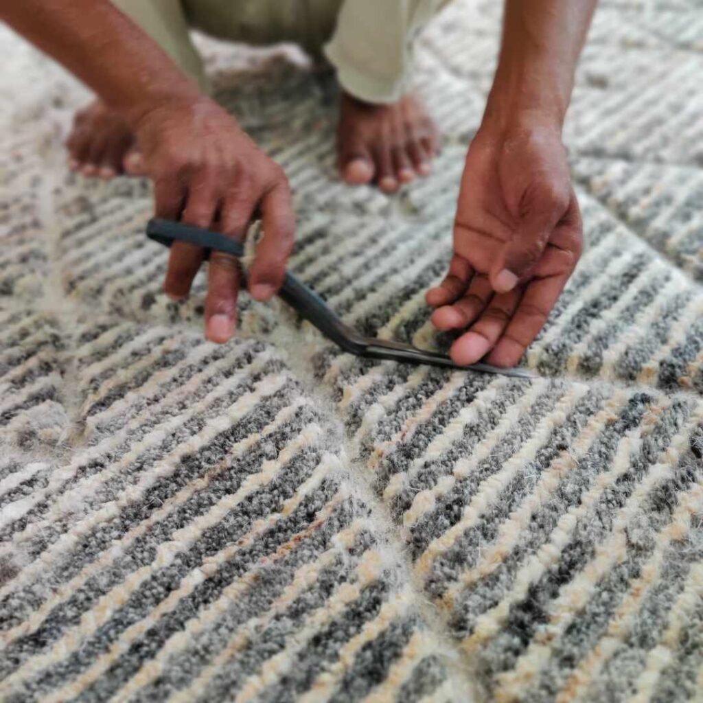 In order to produce a handmade carpet it takes a lot of extensive work and the use of different tools.